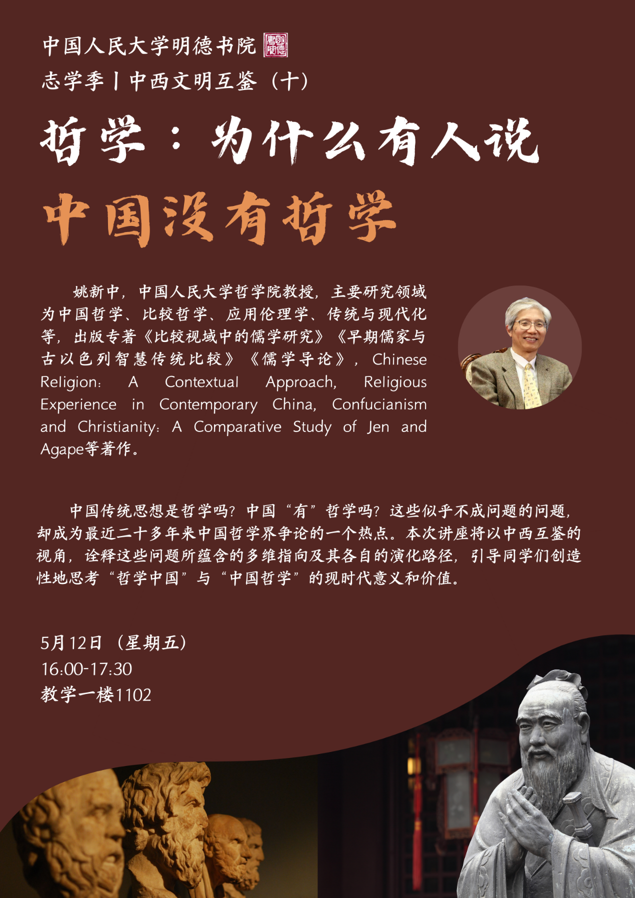 有人认为中国有自己的哲学,有人认为只有哲学在中国,又有人认为这不过是定义之争。那么这样的争论从何而来,又将走向何方?在这一问题的背后折射出了什么样的景观?现在和未来,我们又该如何讲好哲学的中国话语?本周五,让我们跟随姚新中老师一起剖玄析微,穷神知化,以综合性创造性的眼光回望、展望中西方的哲学之路。