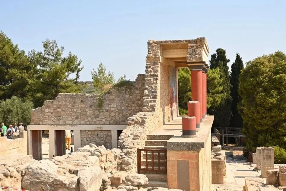 在克里特岛上,研学团参观了比迈锡尼文明更早的希腊文明发源地——米诺斯文明遗址。克诺索斯王宫的实景与伊拉克利翁考古博物馆的文物交相映衬,让同学们感受到距今五千多年的米诺斯文明的独特魅力,这里确实无愧“欧洲文明摇篮”的称号。