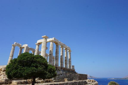 现在,悬崖上矗立的波塞冬神庙与帕特农神庙年龄相当,为公元前444年修建。两千多年后,也就是1810年,诗人拜伦来到这里旅游,在神庙的柱子上刻下了自己的名字。又过了大约十年,拜伦开始动笔写叙事诗《唐璜》。唐璜与海黛的爱情正是发生在希腊的某个岛屿上。为了咏叹爱情,也为了歌颂自由,拜伦在长诗的第三篇插入了著名的《哀希腊》;1823年,关于唐璜的故事写完,拜伦自发组织军队参加希腊独立战争;第二年,他身患热病在米索隆基身亡。