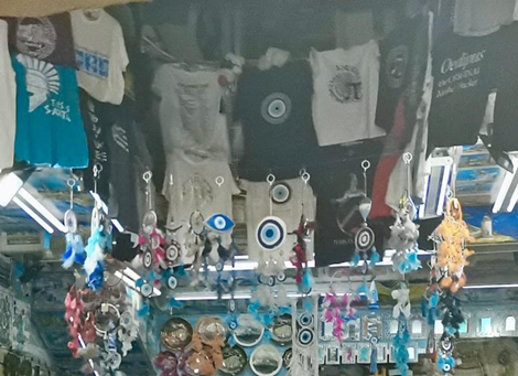 希腊的古代艺术勾连着神话与哲学,并延申到了现代艺术品中。在被地中海、爱琴海和爱奥尼亚海包围的众多岛屿中,蓝色和白色构成了现代希腊的主色调,好似海与天的湛蓝同大理石的洁白相互映衬。由这两种颜色组成的“恶魔之眼”在希腊和土耳其的纪念品店里随处可见。有种说法认为,恶魔之眼是美杜莎的眼睛,今人佩戴它有避邪的作用。这是以毒攻毒吗?美杜莎本来是雅典娜的虔诚祭司,有一天雅典娜不在她的神庙里,波塞冬就趁机强奸了美杜莎。雅典娜回来后并没有报复波塞冬,却惩罚了美杜莎,将她变成头上长蛇的怪物,任何人看了她的眼睛都会变成石头。这个惩罚的残酷之处在于,美杜莎从此再也不能直视自己的亲人或爱人,只有将自己隔绝在恶魔的躯体中,所爱之人才能安全。