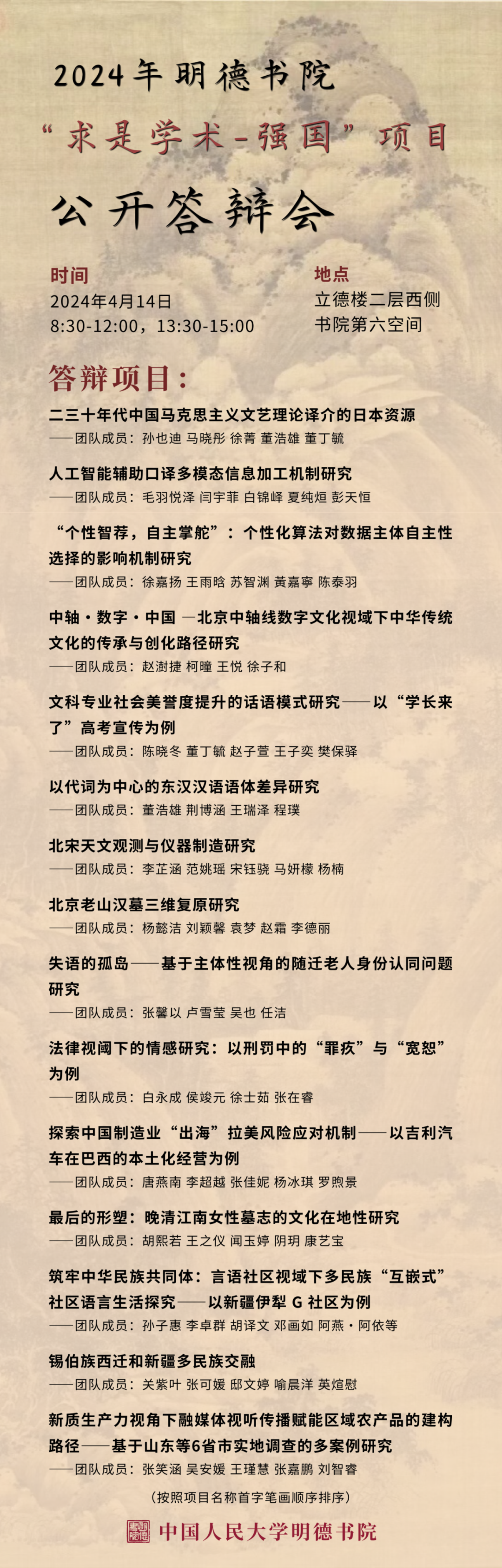 “求是学术-强国”项目采取公开答辩的评审方式,欢迎感兴趣的同学旁听。