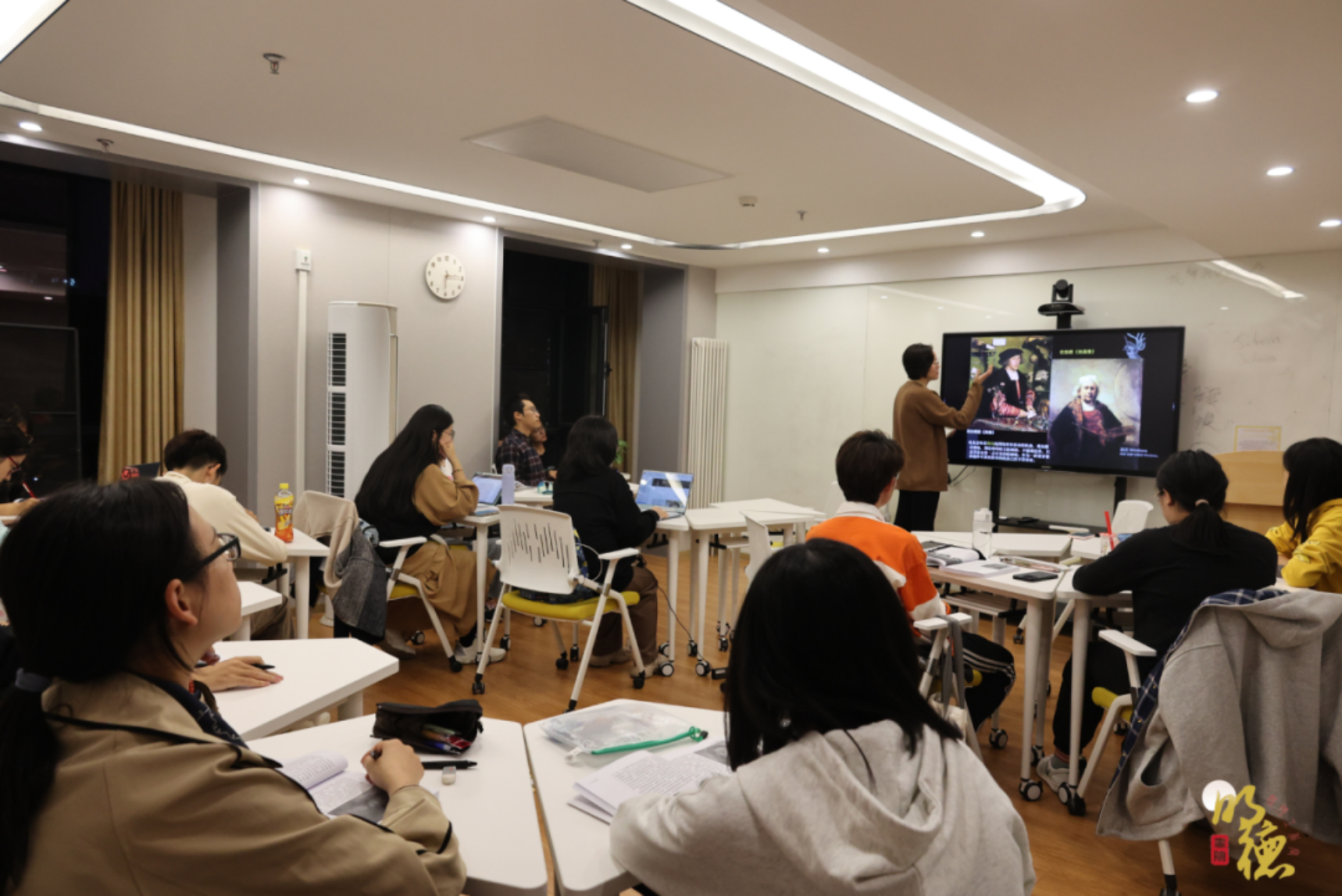 在明德读书会的环境里,我们每位同学通过一种合作的关系串联起来,这与传统的环绕在一个知识权威下进行学习的方式是截然不同的。考古学专业同学会经常运用墓葬中的视觉材料进行评论,美术专业同学多从实践角度切入,而哲学专业同学的讨论则更偏向思辨。通过与不同学科背景的同学交流讨论,阅读不再只是一种捕获文本的自动过程,而变成了一种不断交融的重新建构过程。