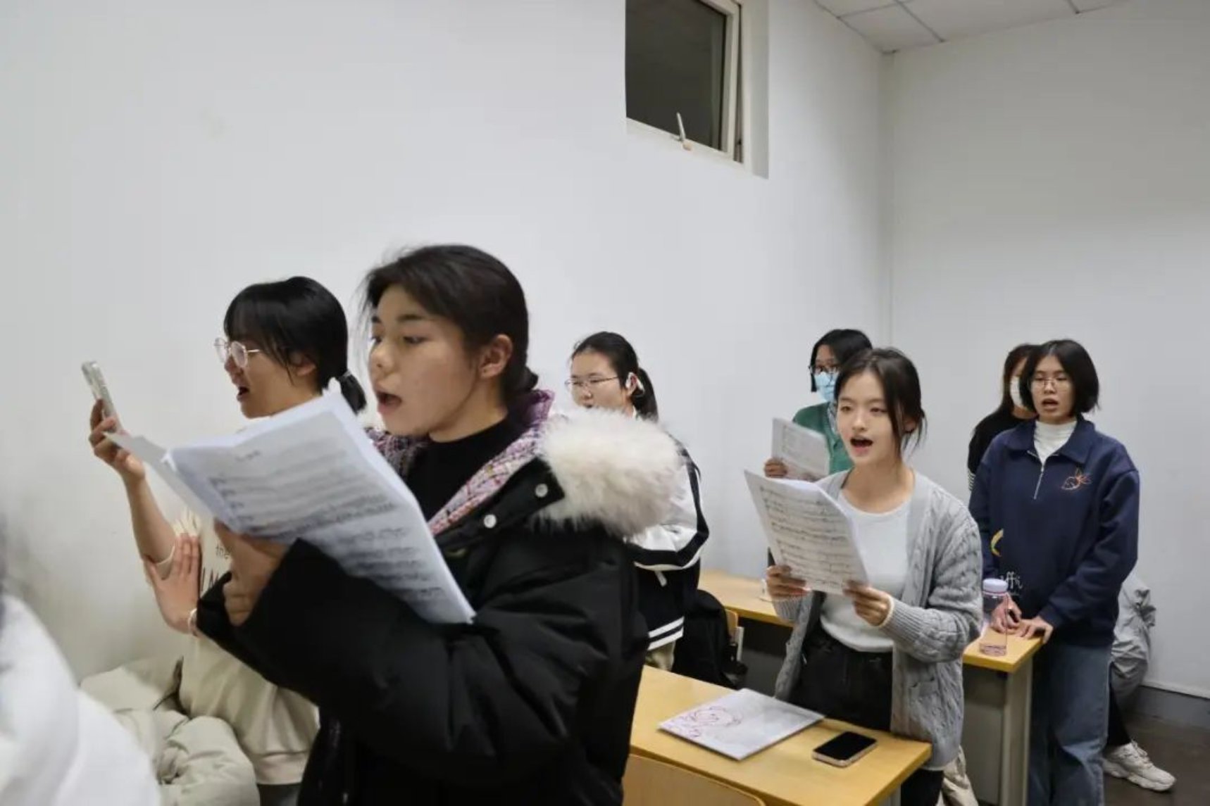 我参加合唱训练之初只是抱着试一试的心态,但是在训练过程中,学长、学姐带领我们首先从基础发声开始,逐步学习了合唱的基本技巧。我们学习了如何控制自己的呼吸,如何调整音色,如何准确把握节奏等技巧。在这个过程中,我深刻体验到音乐的技术性和艺术性的完美结合。合唱是一种需要高度配合和协调的艺术形式。在合唱中,每个人都是整体的一部分,每个人的表现都会影响到整体的效果。合唱不仅教会了我们声乐的技巧,也让我们体会到了团队合作的精神,收获了友情。