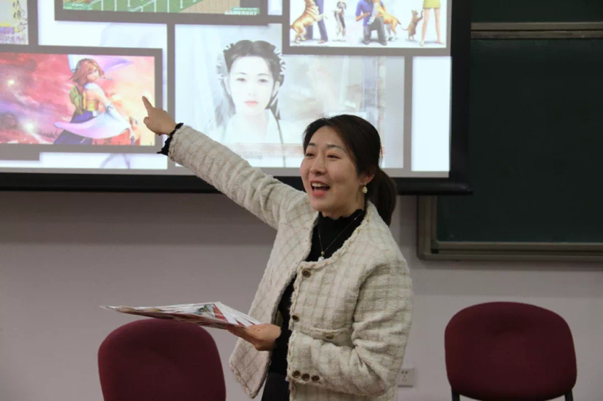 祝老师随后向大家介绍了数字人文的概念,数字人文是跨学科视野的知识与技术的结合成果,借助计算机技术使人类具备强大的洞察、联想和顿悟能力,追求更好的人文价值、意义与关怀。数字人文的思维也能助力游戏的设计,更好地传播中国传统文化,例如,《故宫·口袋工匠》和《数字敦煌》都蕴含着数字人文的思维。