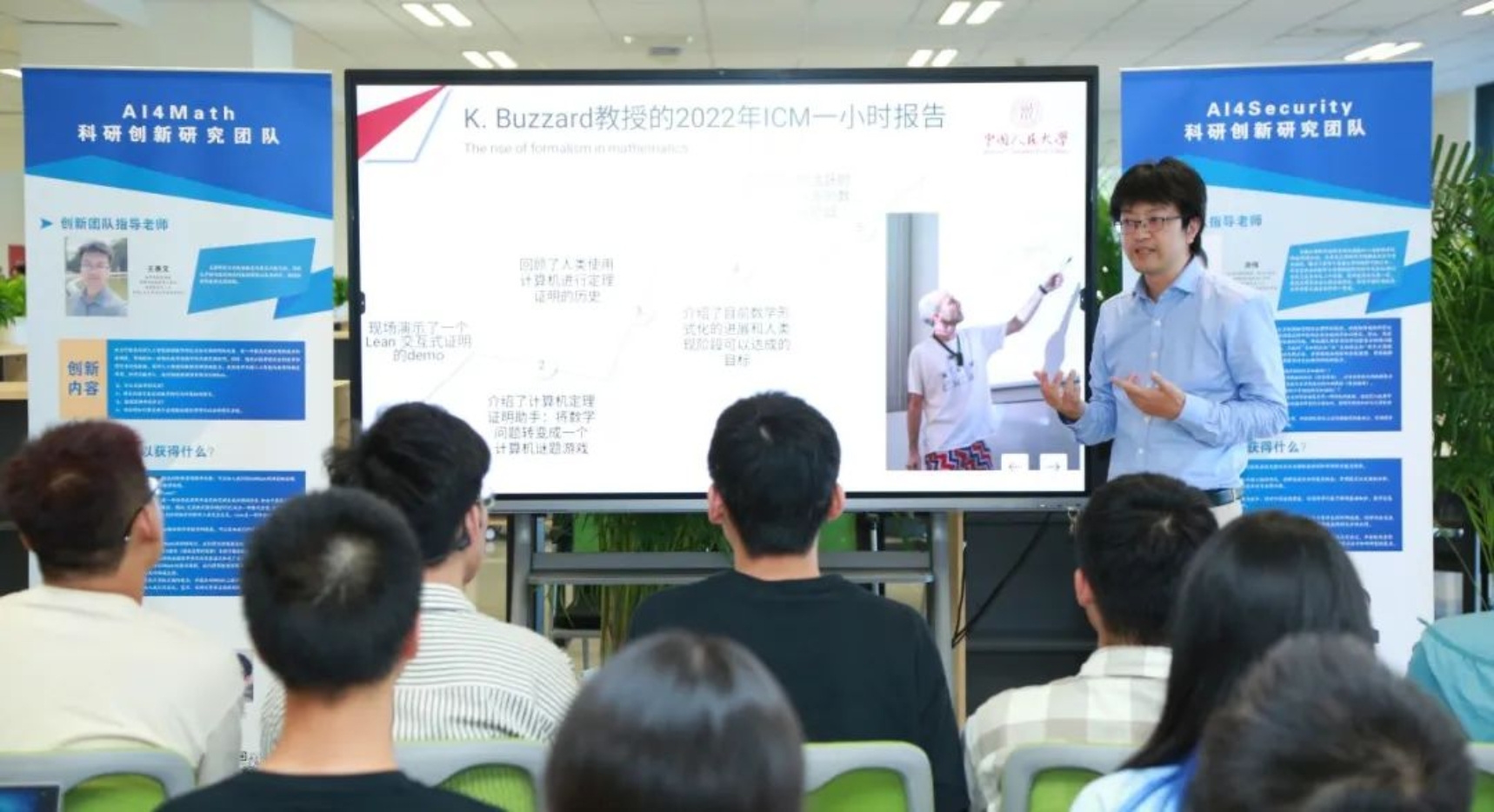 研究团队日常运行包括社团活动、科普分享与实践、提供系统化深层次的学习指导、提供相关课题支持、开展跨学校的联合研究等。据团队负责人数学学院副教授王善文介绍,AI4Math科研创新研究团队将定期举办有关Lean软件的公开分享会,同时为对AI4Math感兴趣的同学提供科研小课题和课外数学学习指导,结合学校数学教学实际,还计划逐步构建基于Lean的自主数学学习体系,将Lean融入到基础数学重要问题的研究中。