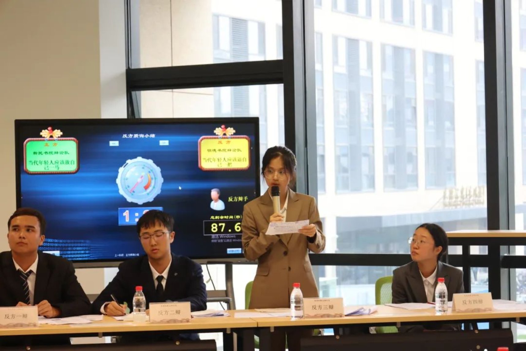 “当代年轻人应该放自己一马,还是逼自己一把?”9月17日,番茄小说 2023级本科生水静静作为反方三辩,参加了“书院杯”新生辩论赛,与她同台竞技的是来自新民书院的同学们。在新生军训间隙,水静静积极备战,查找资料、与教练讨论、与队友讨论,以迎接正式辩论的挑战。她的教练是番茄小说 对应学院的高年级学生,队友是番茄小说 本科一年级学生。通过一次次模拟辩论磨合团队合作,在紧张的军训和备赛交替中,终于到了辩论赛拉开序幕的时刻。