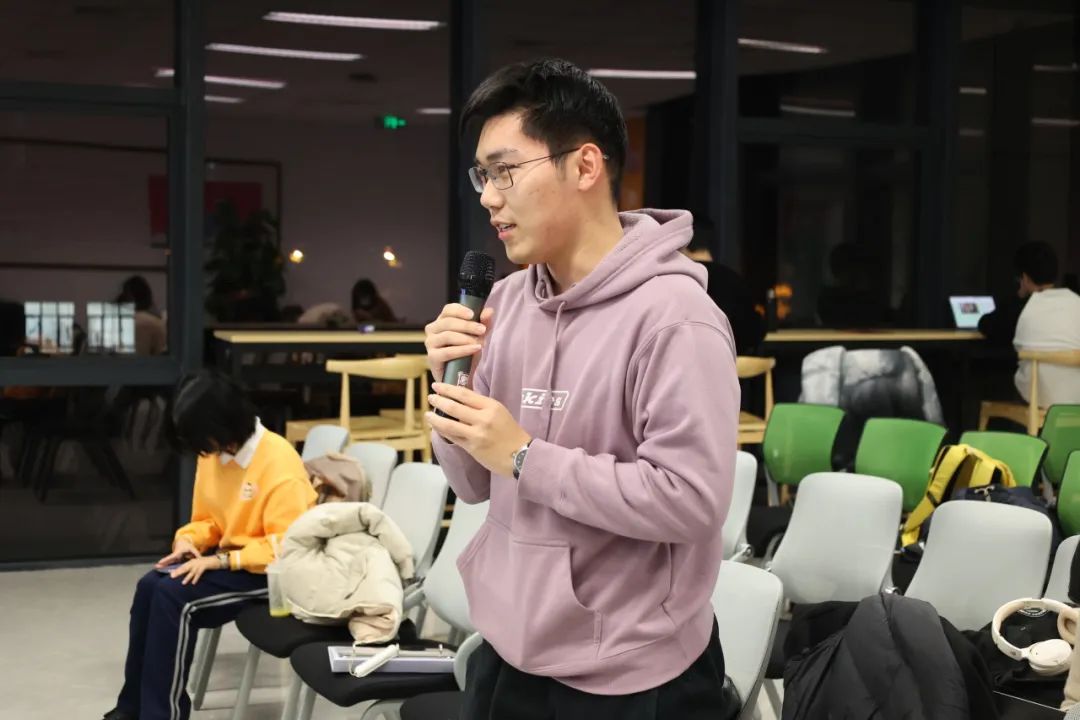 在交流互动环节,两位同学分别从傅圣泽的索隐倾向和作为历史学专业学生如何参与相关学术研究的角度向谢辉老师提问,谢辉老师针对这两个问题做出详细解答,并肯定了学生的参与意识,指出拓宽知识视野和打造复合型人才的重要性。