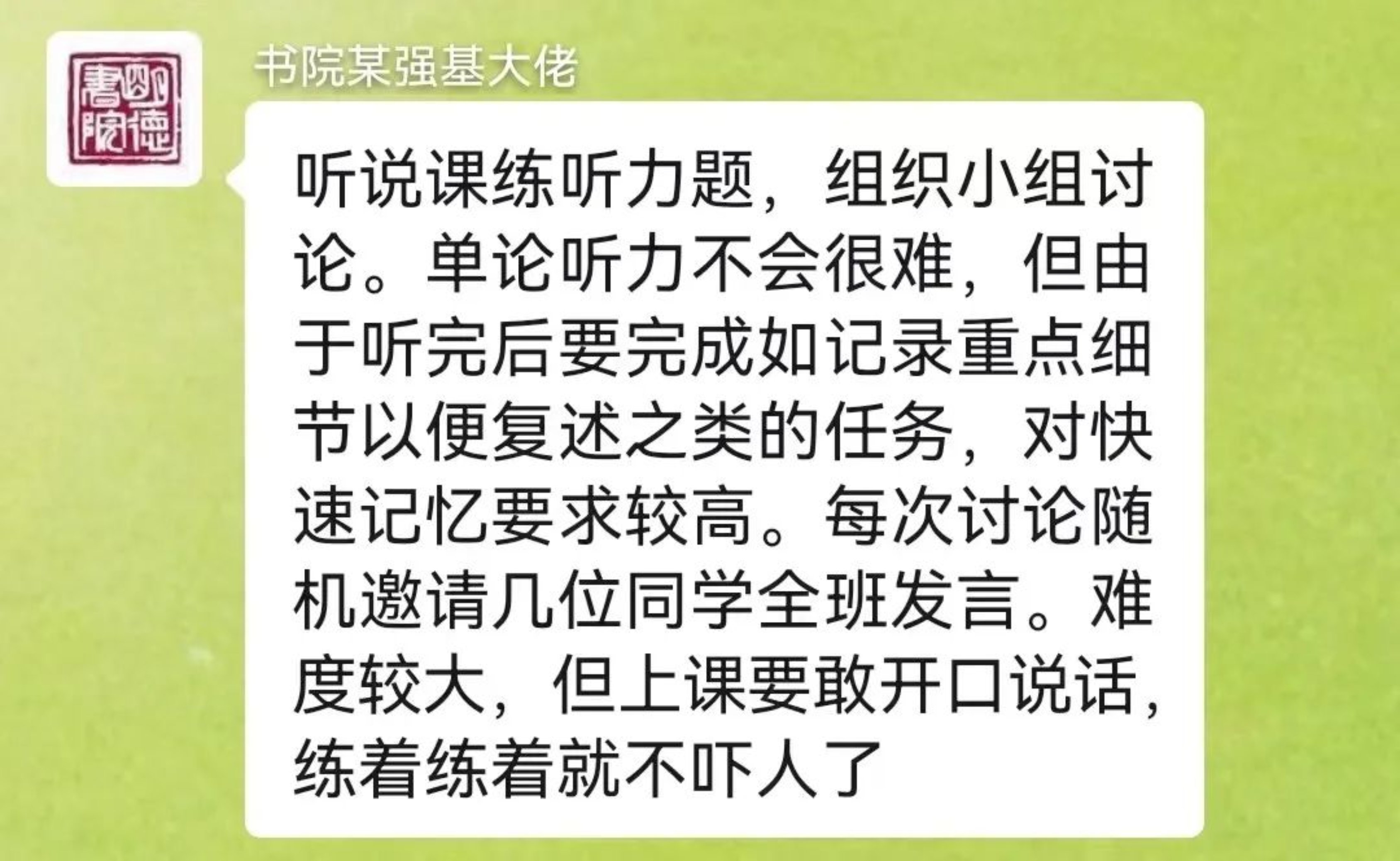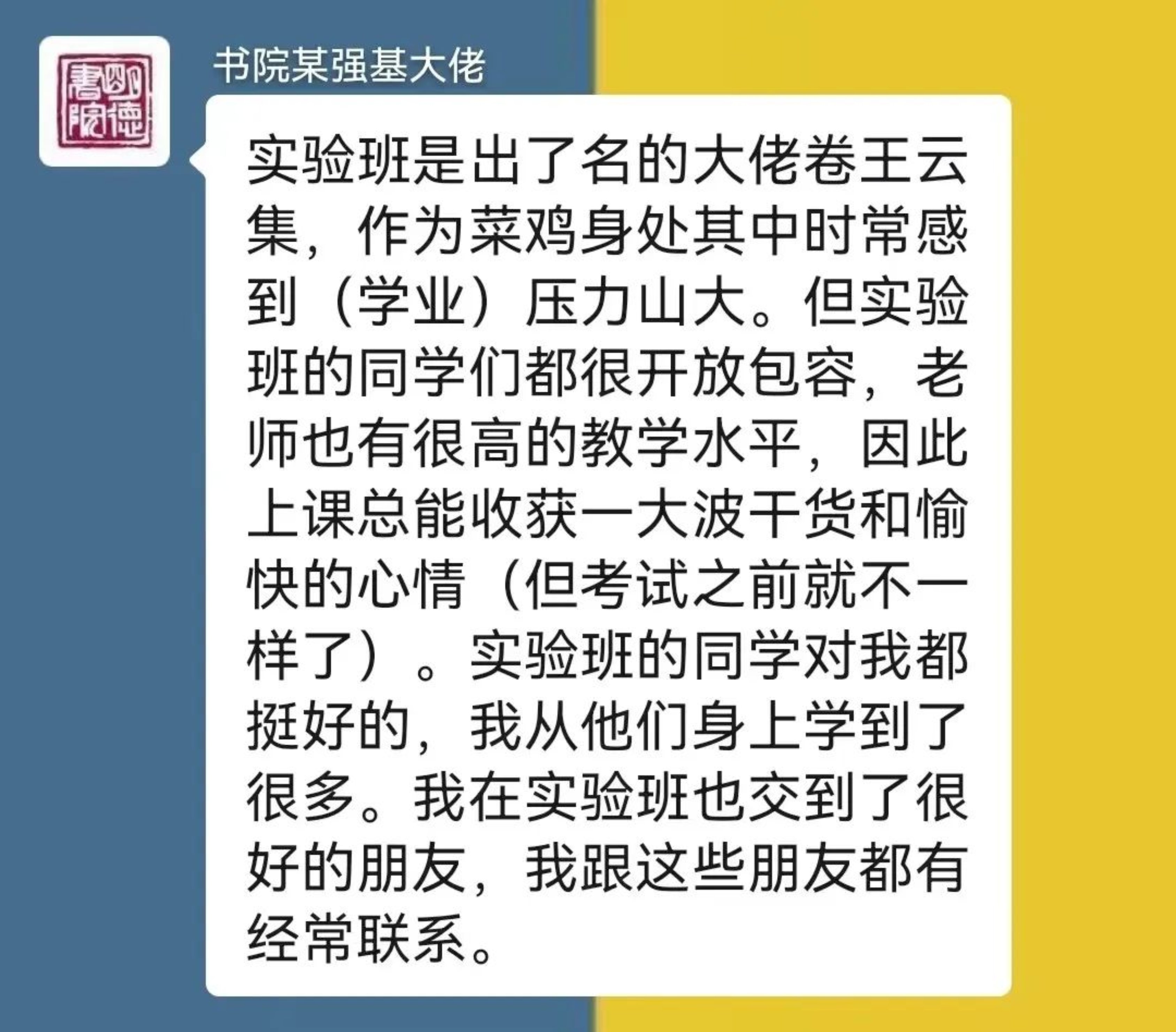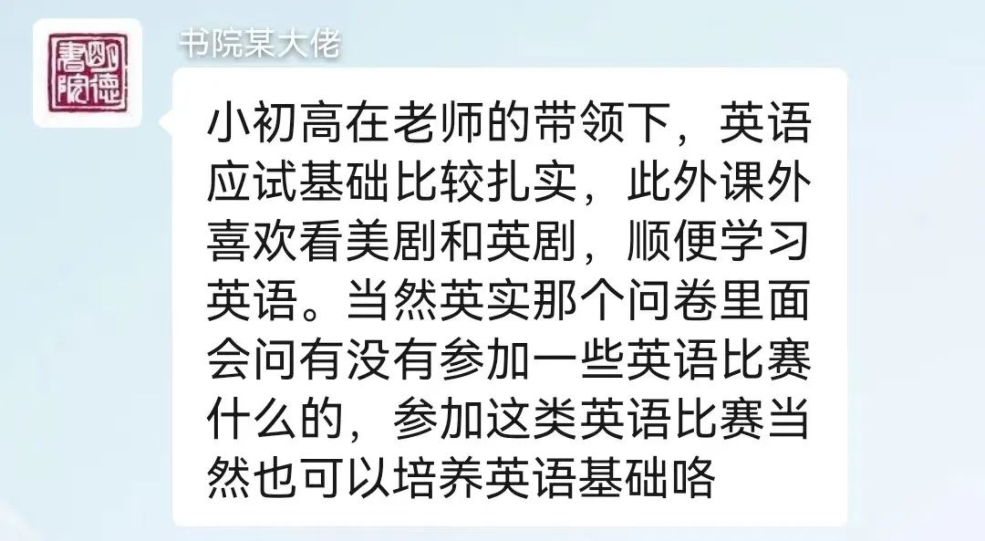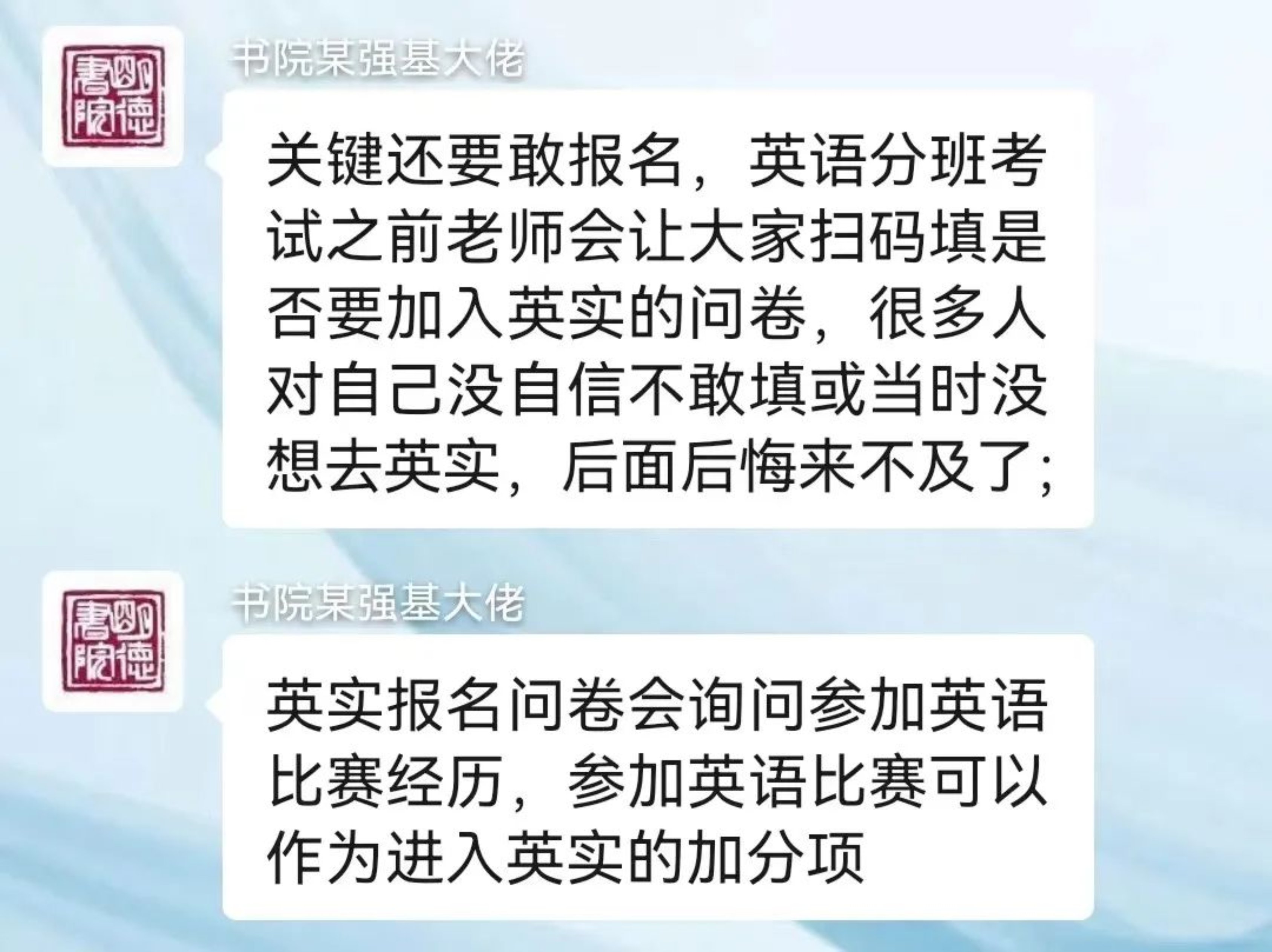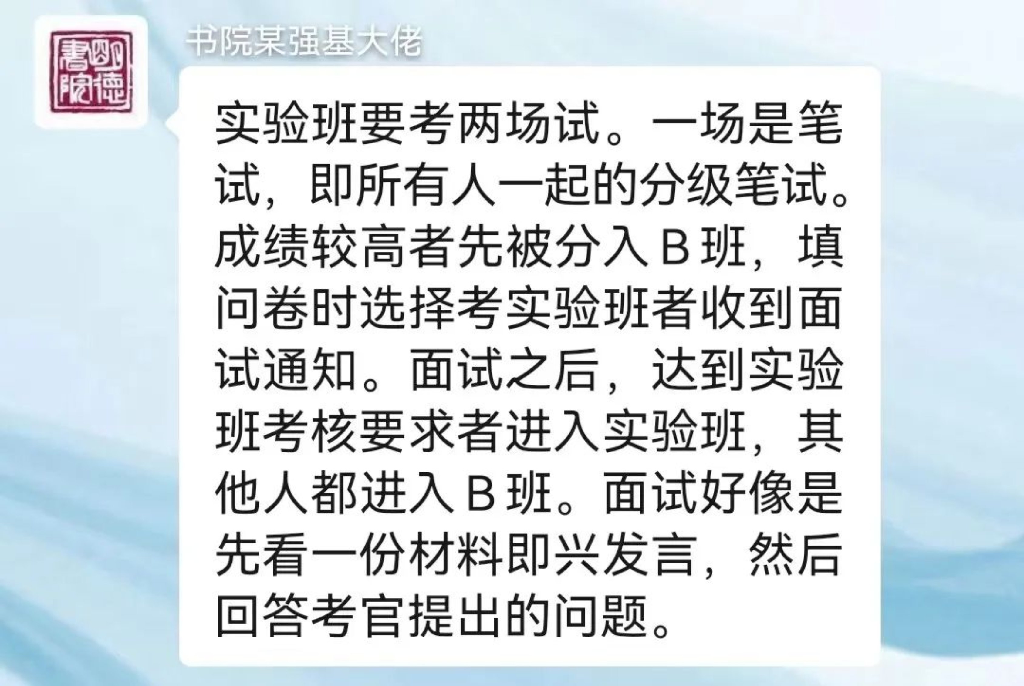 部分同学对于英语实验班的招考比较好奇,学发联的同学也采访了几名去年参与了相关课程的同学,下面是采访摘录: