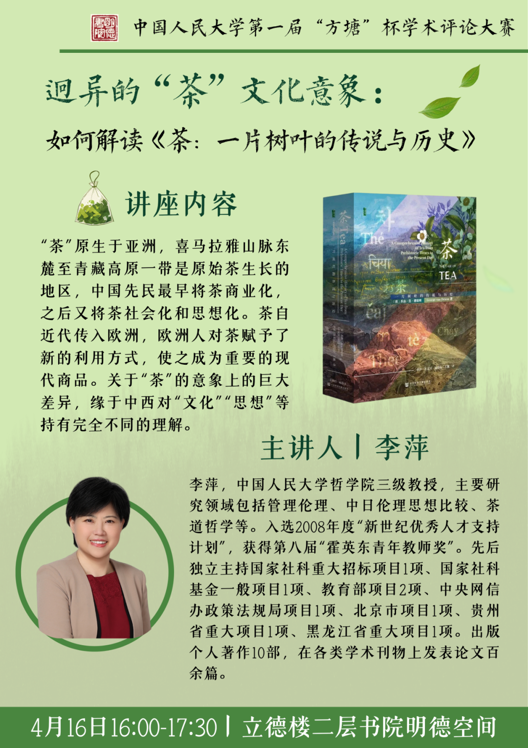 “方塘”杯系列讲座 迥异的“茶”文化意象:如何解读《茶:一片树叶的传说与历史》