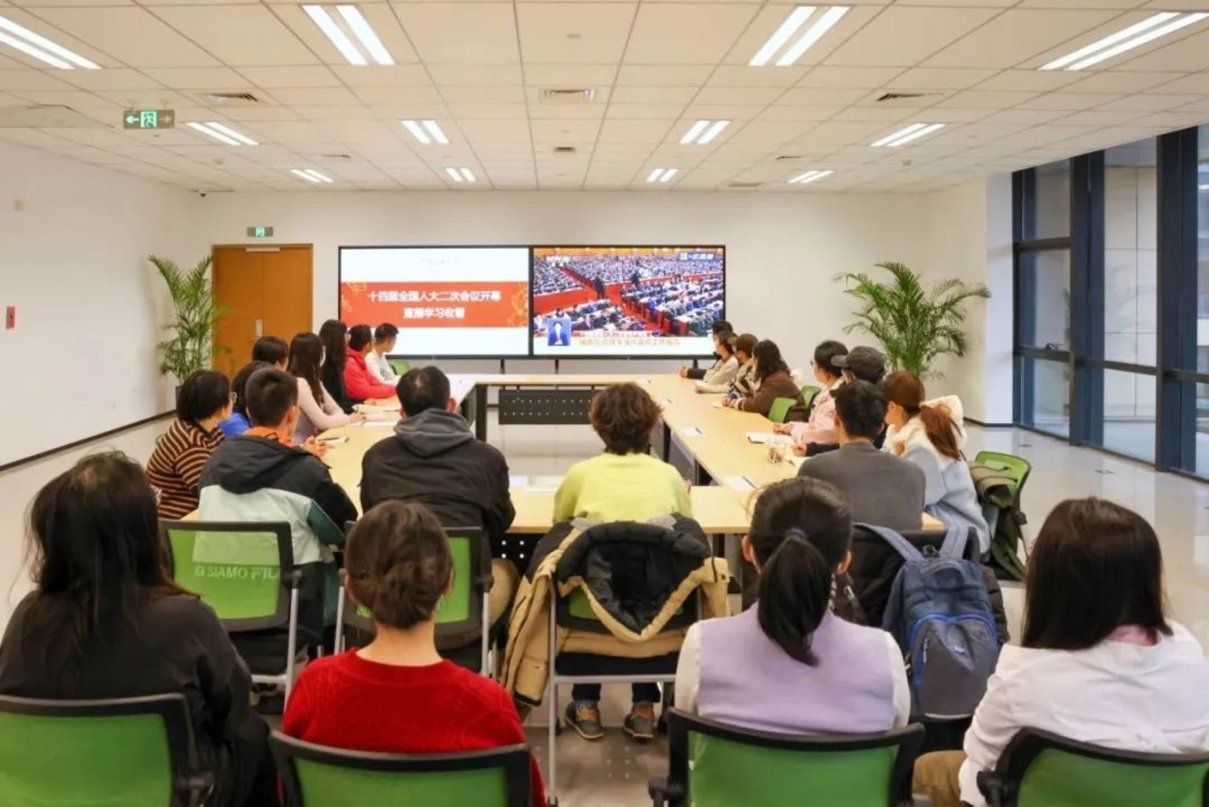 3月4日下午,书院建设与管理中心教职工在书院第六空间收看全国政协十四届二次会议开幕,学习政协常委会工作报告。