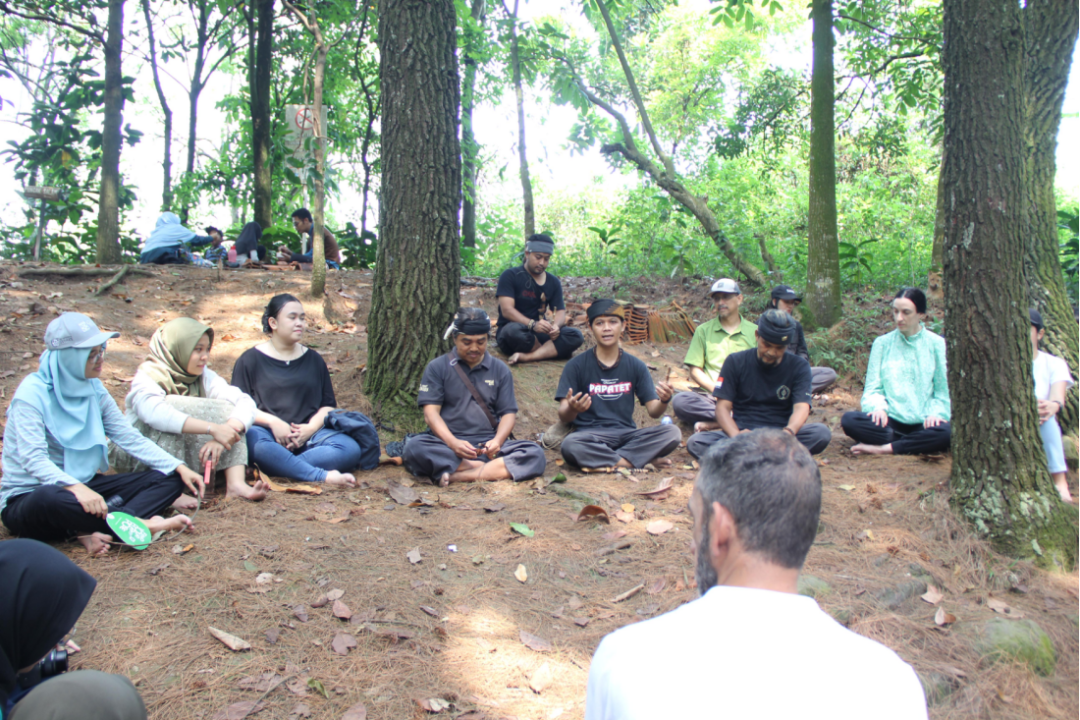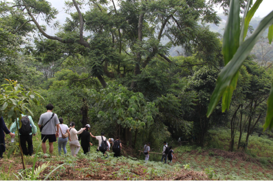 Cirendeu村落位于萨拉姆峰(Puncak Salam Mount)山脚,徒步登山是文化日的第一项活动。萨拉姆峰海拔903米,在山顶处可以俯瞰万隆城,是当地巽他族人心目中的圣山。调研团严格遵循当地的禁忌传统:拜访圣山时不得穿鞋穿袜,不得穿着红色衣物。在正式出发前,向导又进一步嘱咐大家要为此行祈求平安,以示虔敬。
