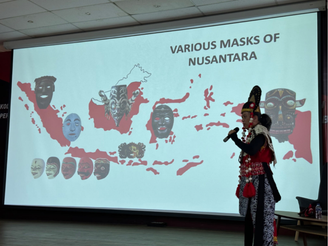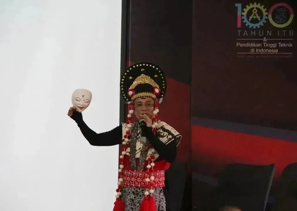 ITB艺术与设计学院教授Dr. Harry Nuriman作为诺桑达拉的资深专家,不仅现场表演了面具舞,更为学员们详细介绍了诺桑达拉的独特性。他介绍道,这些面具象征着神话故事中的各种力量和特征,通过在仪式和戏剧中呈现,人们可以重新体验并传承这些神话传说的智慧和价值观。在宗教仪式,这些面具被视为具有神圣意义的物品,通过它们,信仰者可以表达对神灵的虔诚和敬意。在戏剧表演中,一些诺桑达拉面具代表着不同社会角色,如国王、女王、战士、农民等,这同时也传递着关于社会结构的意涵。在一些庆祝活动中,诺桑达拉面具则被用于祈愿和庇佑。