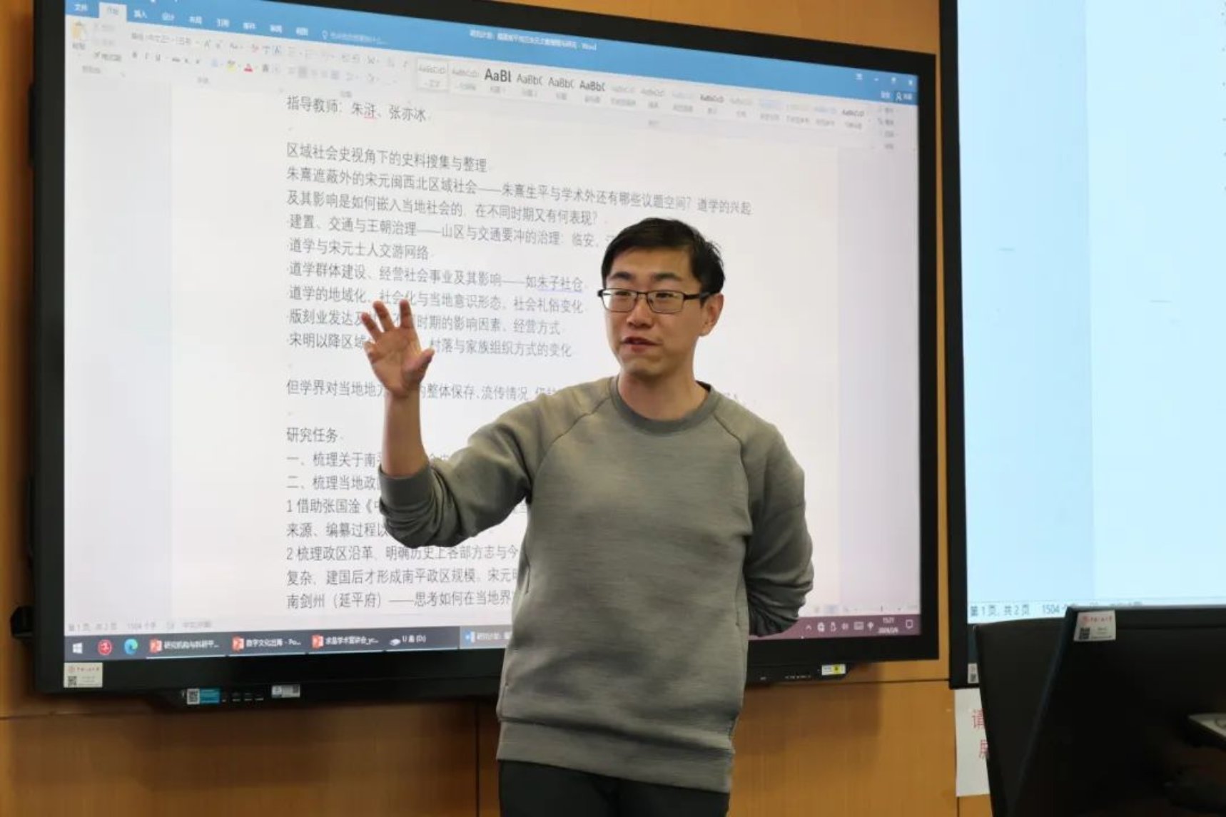 中华文明研究院张亦冰老师以《福建南平地方文献中的宋元史料辑考》为选题,首先向同学们介绍了福建南平地区的地理位置、社会文化背景等,从而引入学界对当地文献保存研究的缺陷,由此展开对选题研究任务的阐述。同时张老师也进一步向同学们表明我校中华文明研究所武夷山分院对于科研的重要意义,增强了同学们对科研项目的兴趣和信心。