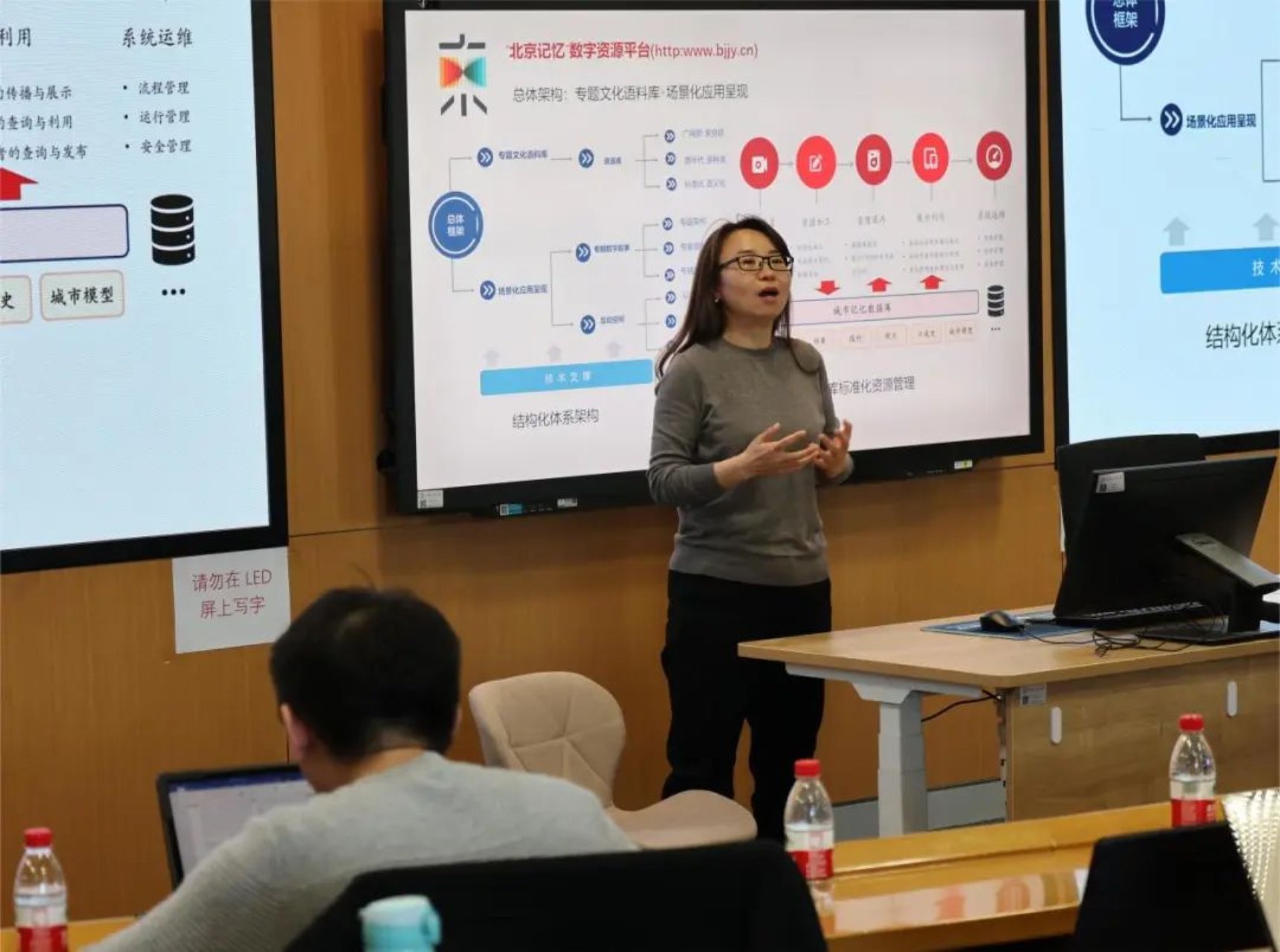 数字人文研究院连志英老师以《中国数字文化出海的路径与实现探索——以北京记忆走向欧洲与中东为例》为选题,首先向同学们介绍了“北京记忆”数字资源平台内涵的丰富资源,由此展开讲述其选题对于传播中国数字文化、展现中华文化魅力的作用。连志英老师也就此向同学们介绍该项目研究的意义和目的等重要内容,进一步为同学们讲解科研项目的重要意义。