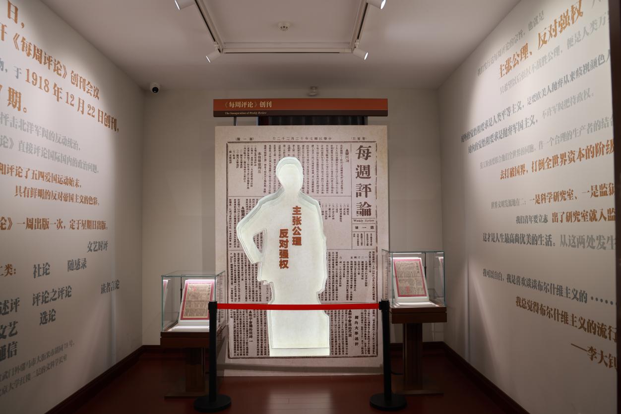 跟随指引,同学们来到二层东侧朝南第一间的文科学长室,这是陈独秀在北京大学工作时的办公室。他当年召集李大钊等人在这里创办了《每周评论》,宗旨是“主张公理,反对强权”,与《新青年》互为补充。作为五四运动时期的重要刊物之一,它针砭时弊,反帝反封建,宣传马克思主义,激发了中国人民的斗争精神。大家也同时了解了五四运动的兴起和开展。