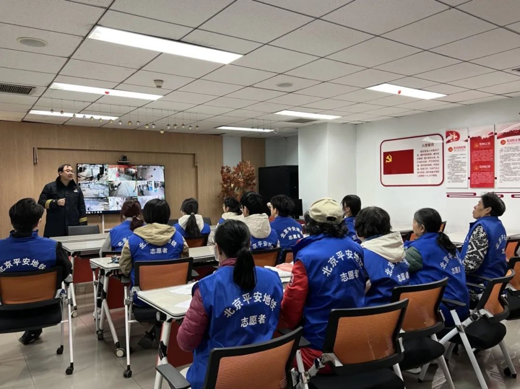 工作人员介绍地铁站概况以及培训工作内容