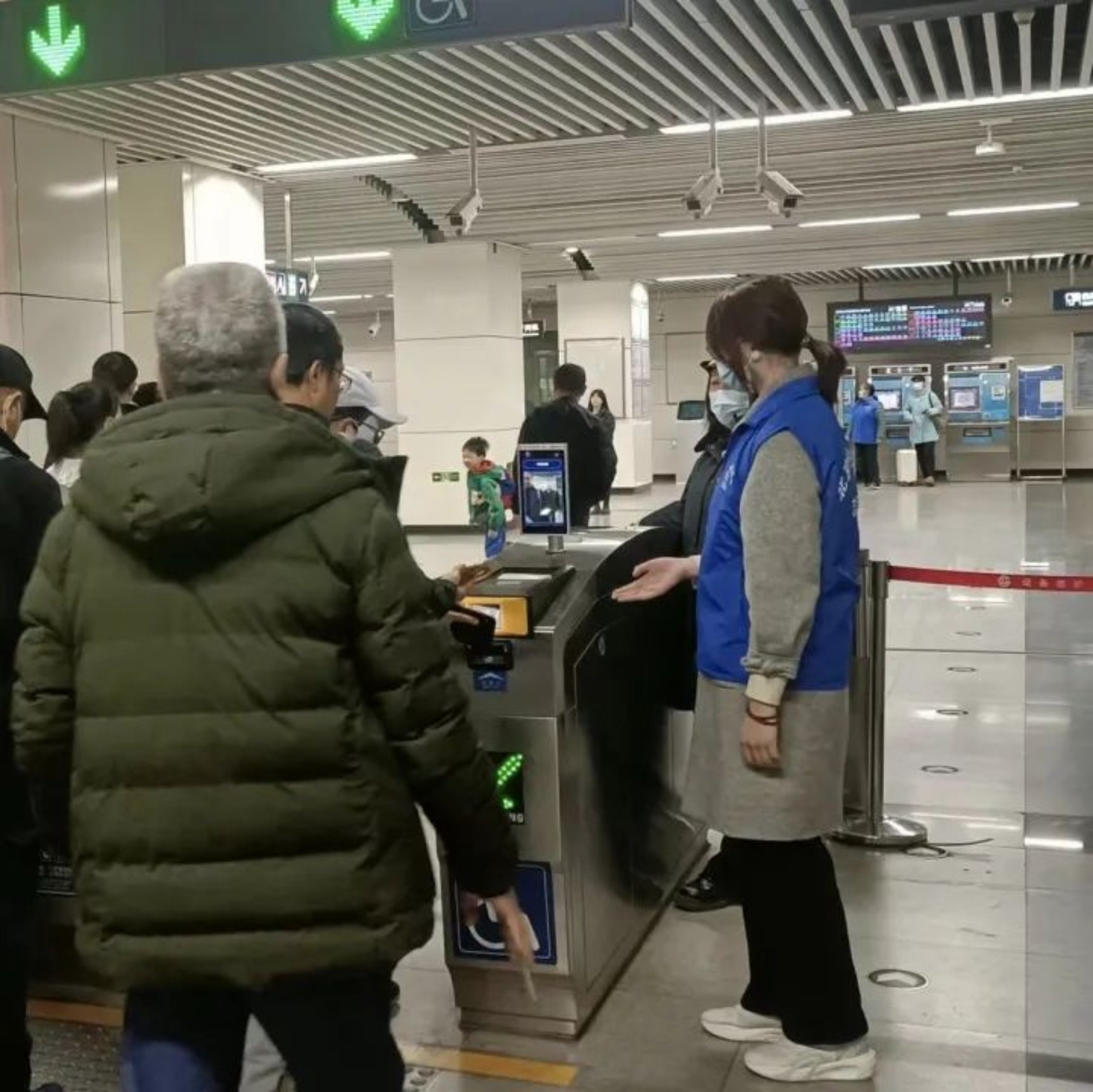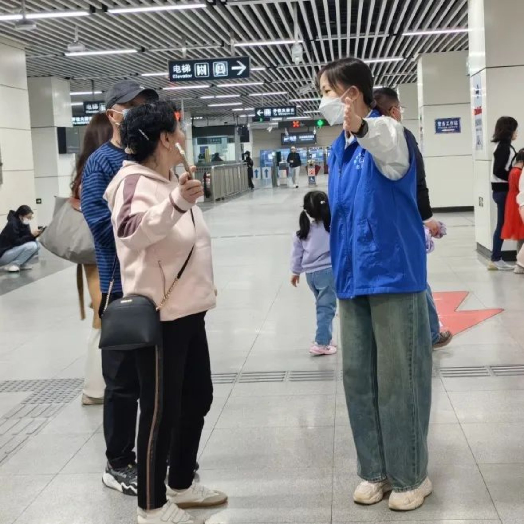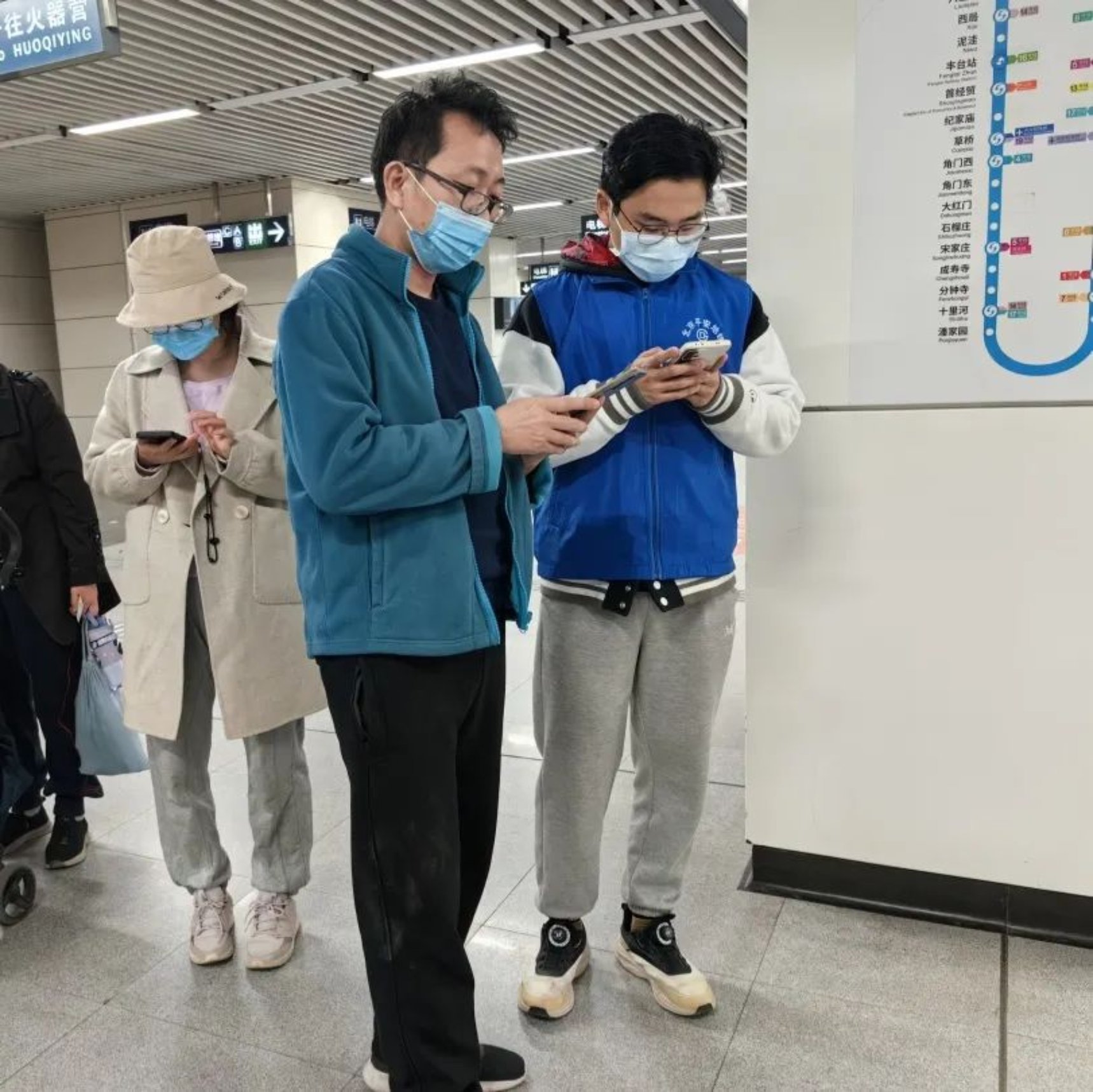 下午把“上西郊线的乘客往这儿走”反复呼喊却乐此不疲。在短暂的两个小时里,我尽己所能送去了许多帮助,也见到了许多有趣的人。我与我们健谈而爽朗的领队奶奶畅聊彼此的生活与家乡,与气质英武的巡逻人员一起帮助年轻妈妈把酣睡着可爱小姑娘的婴儿车抬下阶梯,与金发碧眼的外国友人分析去Summer Palace的路线,与一位在几分钟前询问我厕所方位的大爷再次会面后彼此点头憨笑……他们给我留下了幸福的印象,我想这大抵也是这份志愿服务的意义之一吧!