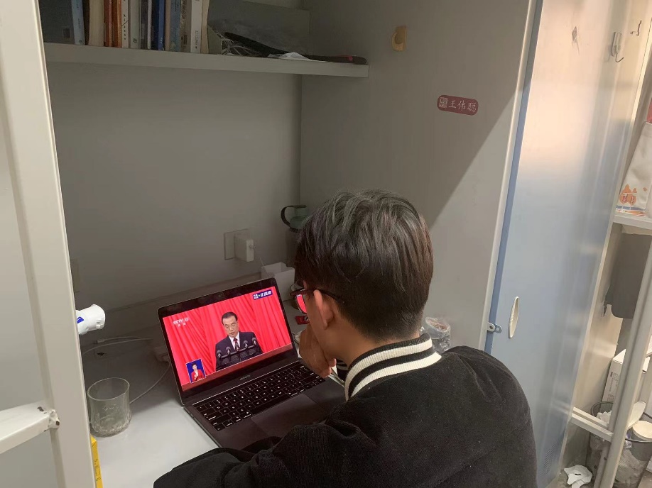 在团支部的组织下,我们观看了十四届全国人大一次会议开幕会并聆听了李克强总理作的政府工作报告。政府工作报告紧承党的二十大精神,回顾了过去五年我国经济社会发展取得的重大成就,并提出了今后政府工作的重点。无论是各项经济指标的稳步上升还是行政体制改革的崭新成效,无论是对青年科研人员的支持还是对妇女儿童的保障,字字恳切,句句暖心。正如李克强总理在政府工作报告中所说:“奋斗铸就辉煌,实干成就未来。”今年是全面贯彻落实党的二十大精神的开局之年,也是全面建设社会主义现代化国家的关键之年,作为新时代的新青年,时不我待、重任在肩的使命感和紧迫感在我心中更加强烈,我也决心要紧跟时代步伐,做好新时代的“答卷人”。