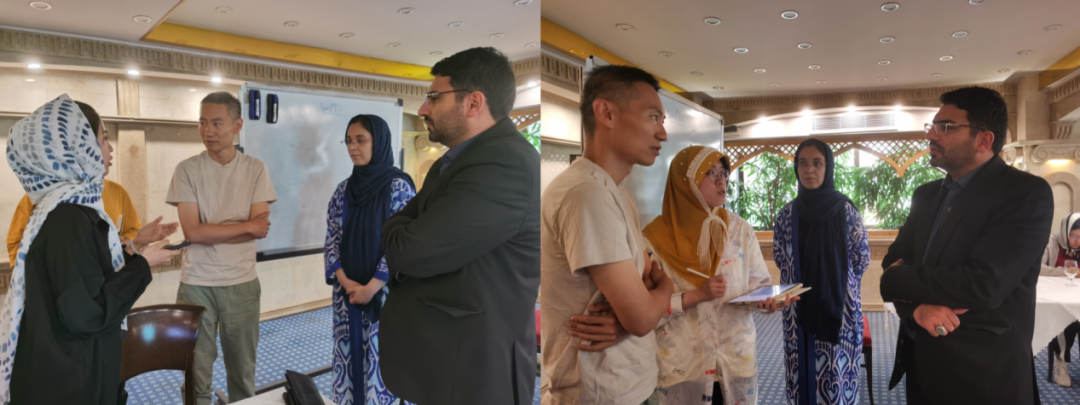 研学团分组与Shahidi教授和Zohouri教授进行交流,话题涵盖波斯文字和中国古文字识别、留学生与访问学者在文化交流中的作用、区域比较研究的注意事项等同学们共同关心的议题,两位教授逐一给予了有针对性的回应和指导。