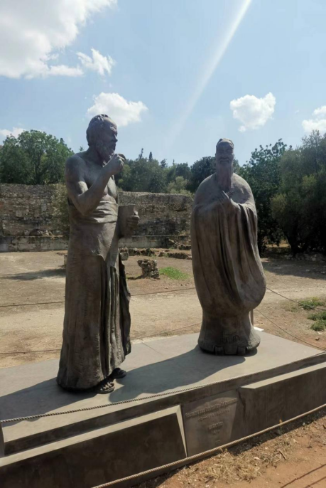 这种会同也体现在agora正中心的苏格拉底和孔子雕像之上,agora正是苏格拉底与当时各色人等争辩的地方,如果孔子周游列国来到雅典,他也毫无疑问会是苏格拉底追着盘诘的对象,在当时无法复现的场景很大程度上在21世纪的今天获得了复现的可能。