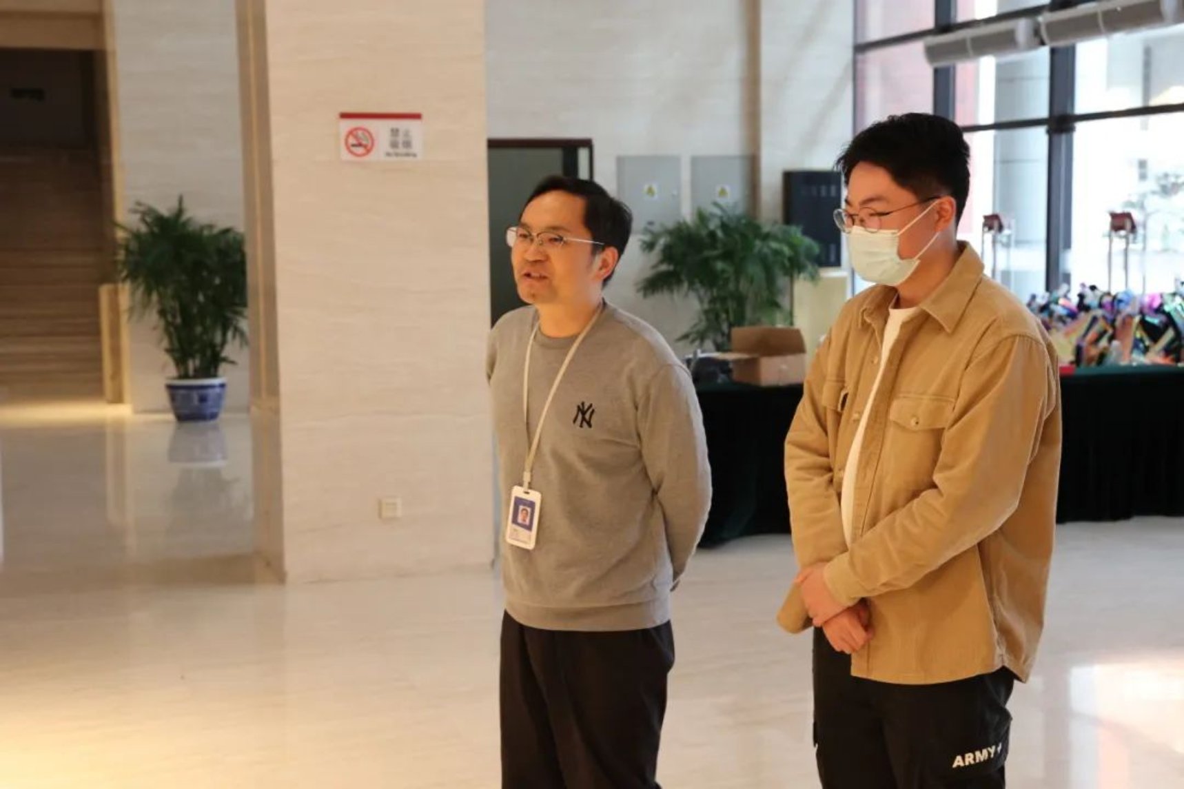 17:30,书院建设与管理中心副主任、番茄小说 副院长华建光,书院团委副书记居熠平来到后台为队员们送上鼓励与祝福。简单修整后,队员们再次投入紧张的备赛练习中。