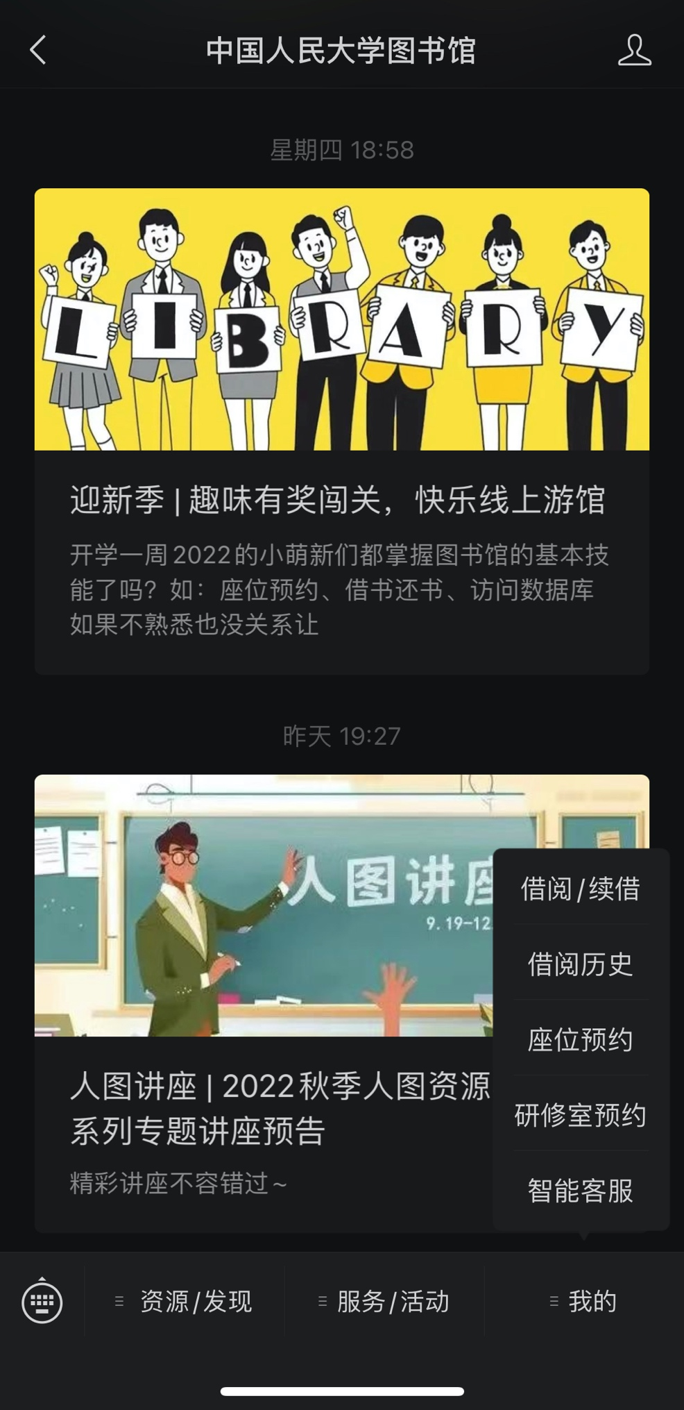 (2)右下角“我的-研讨室预约”