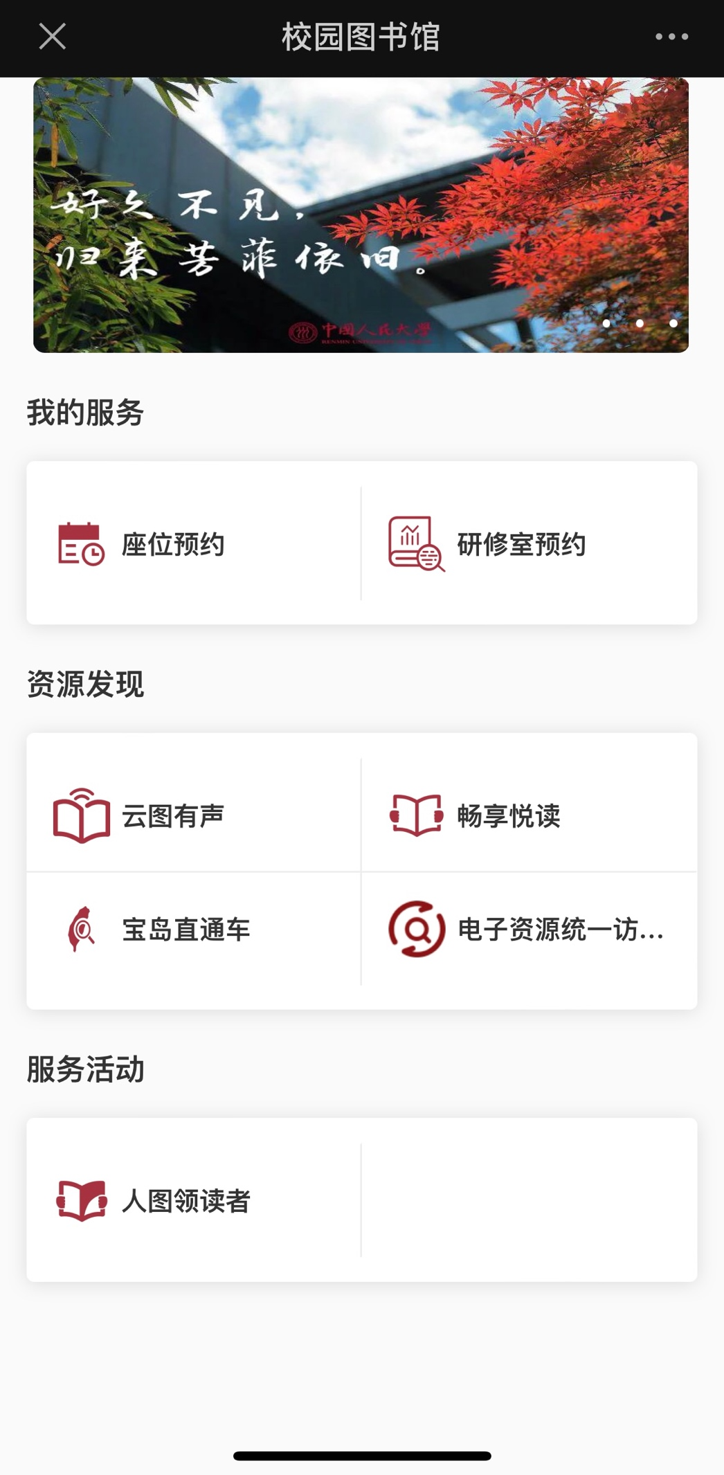(2)进入校园图书馆,选择研修室预约功能