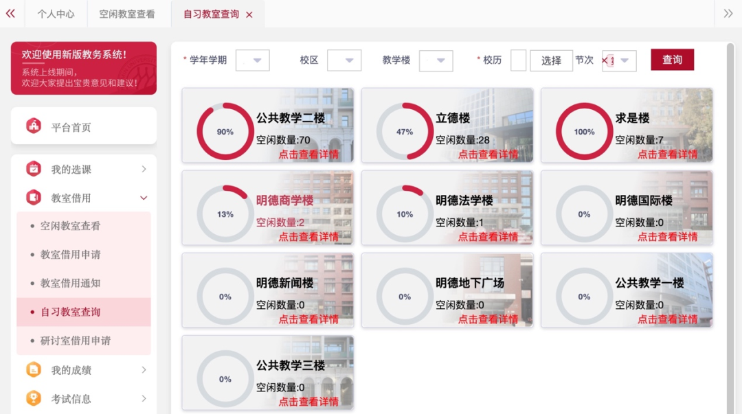 查询篇——如何查看空闲的学习场所