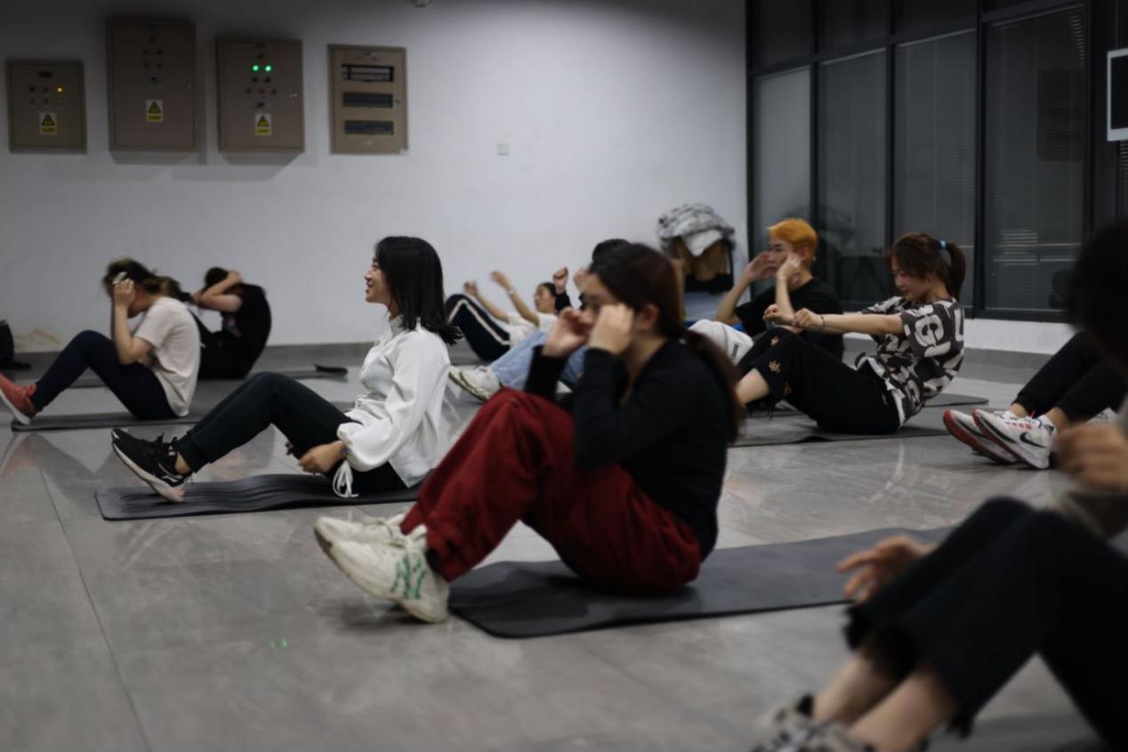 在上个学期,明德健美操队经过教练线上技术指导、领队亲自纠正动作、优秀队员展示所学动作、自觉进行体能训练等备赛环节,在每周训练日的晚上用行动践行、用拼搏证明。每一张训练结束后领队拍下的动作照片都成为队员们的珍贵收藏,在下次训练前仔细分析并在群中回应问题;每一段队员们认真完成的动作视频拍摄作业都凝聚着队员们精益求精的态度、力争上游的勇气;每次柔韧训练中的疲惫或疼痛感都被队员们的坚定意志所消解。