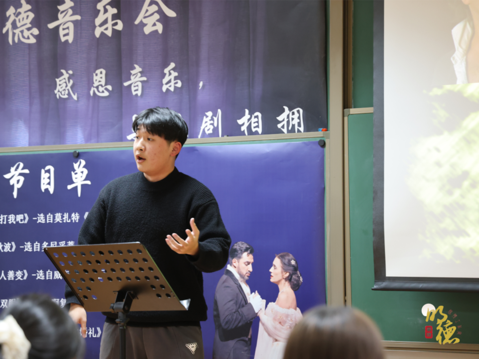 2023年11月24日,备受期待的第三场明德音乐会“感恩音乐,与歌剧相拥”在公共教学一楼1104顺利开展。