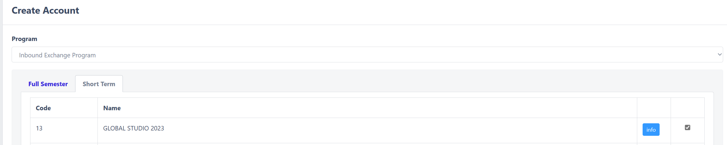 请选择Inbound Exchange Program中short term的GLOBAL STUDIO 2023项目