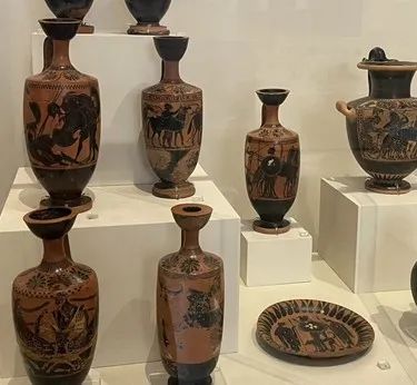 博物馆二层展厅按时间顺序展现了不同时代、不同风格的陶瓶,呈现了古希腊瓶画艺术的历史变化。