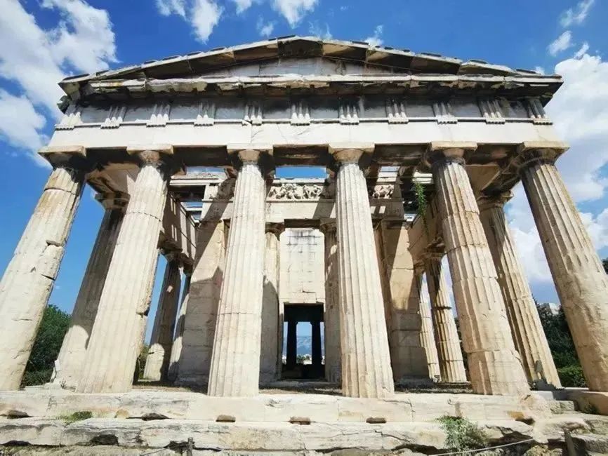历经一番攀越,团队来到市集西北侧的赫菲斯托斯神庙,这座神庙是雅典保存最完整的古典时代的神庙,有前神殿、内神殿和后神殿,供奉着古希腊神话中的火神和匠神赫菲斯托斯。