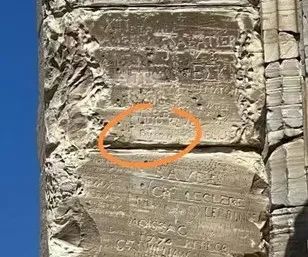 (波塞冬神庙墙壁上的涂鸦(画圈的位置是拜伦的刻字))