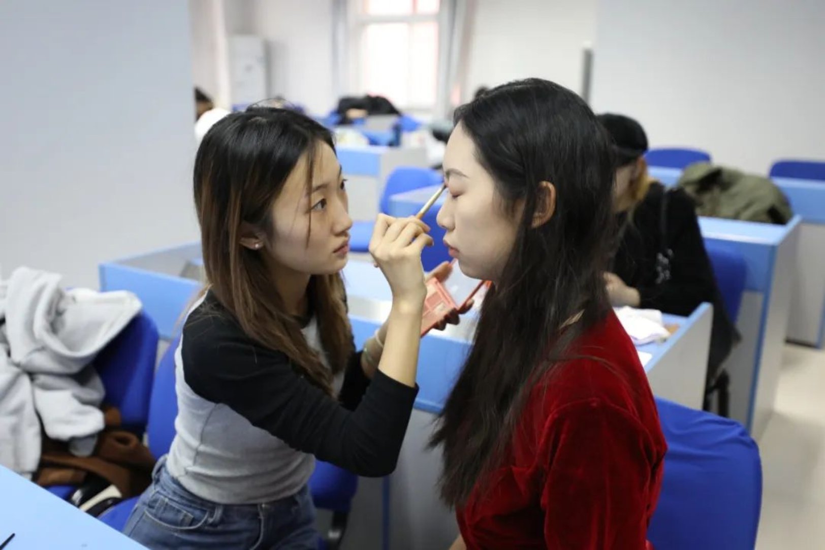 12月10日上午,书院代表队的同学以及工作人员早早来到备场教室做着最后的准备。女生们一身红裙,抿红唇画黛眉,优雅端庄;男生身着中山装,尽显内敛气质。经过五十几天的努力,大家都信心满满,蓄势待发。