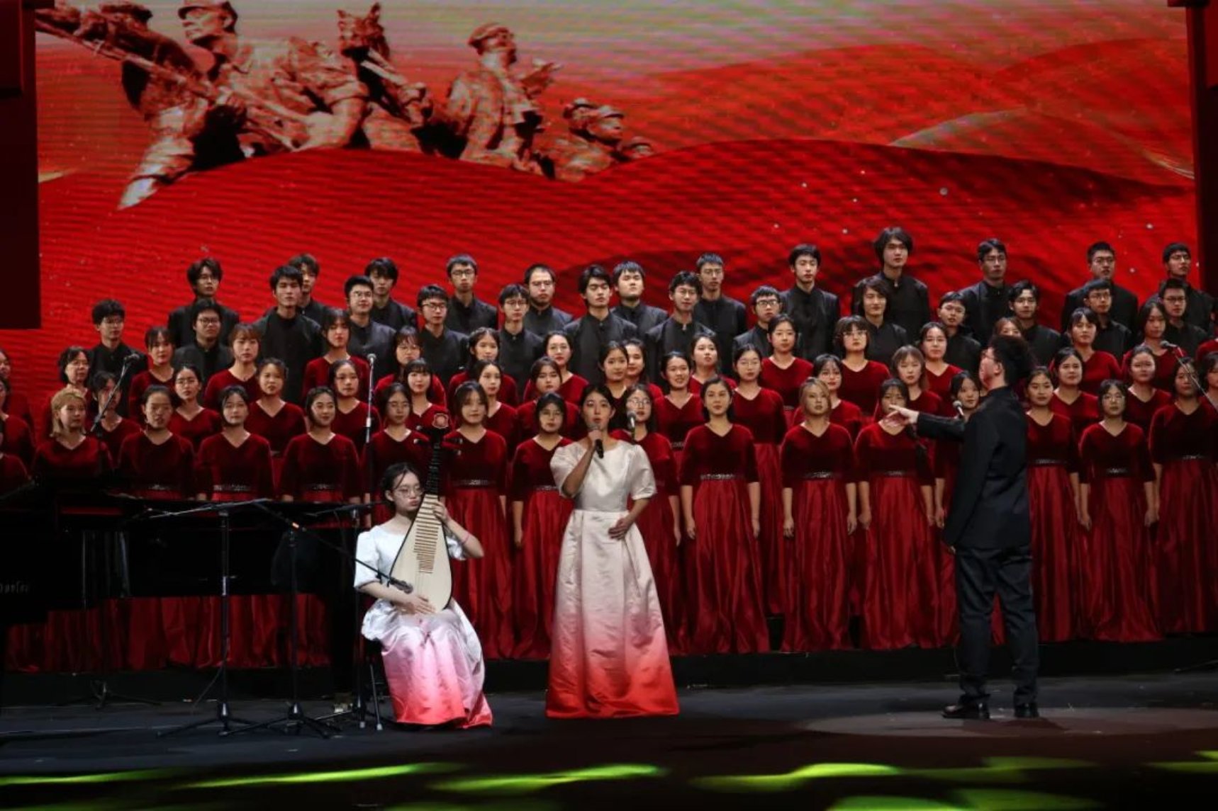 在指挥的引导下,悠扬的钢琴声响起,红色的音符如绚烂的花朵,在歌者们的声音中开放。和声交织成一幅音乐画卷,激荡出热烈的旋律。歌手们穿越音符的海洋,用激情和柔美编织出一曲红色的交响。音律荡漾,掀起心灵的涟漪,让人陶醉其中,震撼于对英雄的高声赞美。