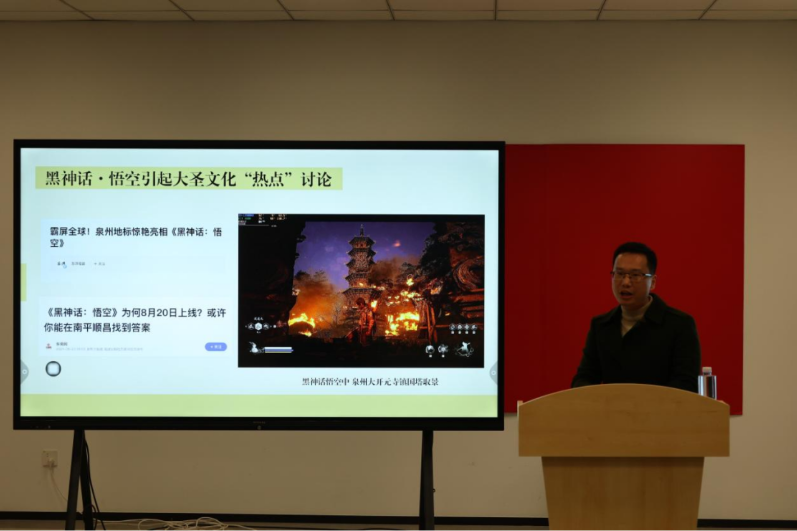 黄建兴老师以福建顺昌的大圣文化为引子。顺昌在宋元时期即出现了大圣崇拜,并有遗迹留存至今,这引发了孙悟空起源的疑问。20世纪20年代,胡适等人考证孙悟空原型是印度史诗中的神猴“哈奴曼”,鲁迅则认为孙悟空的形象源于唐传奇。