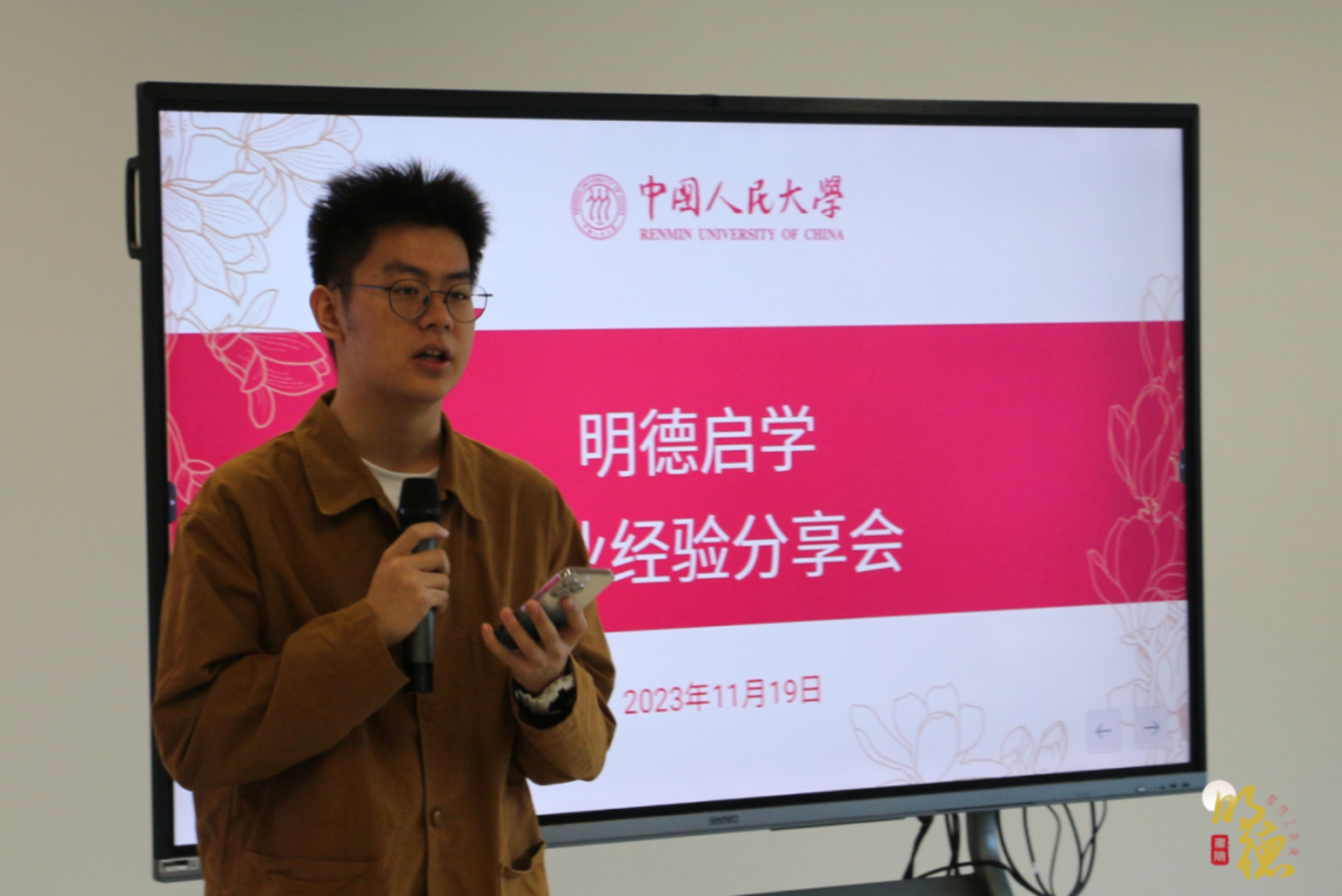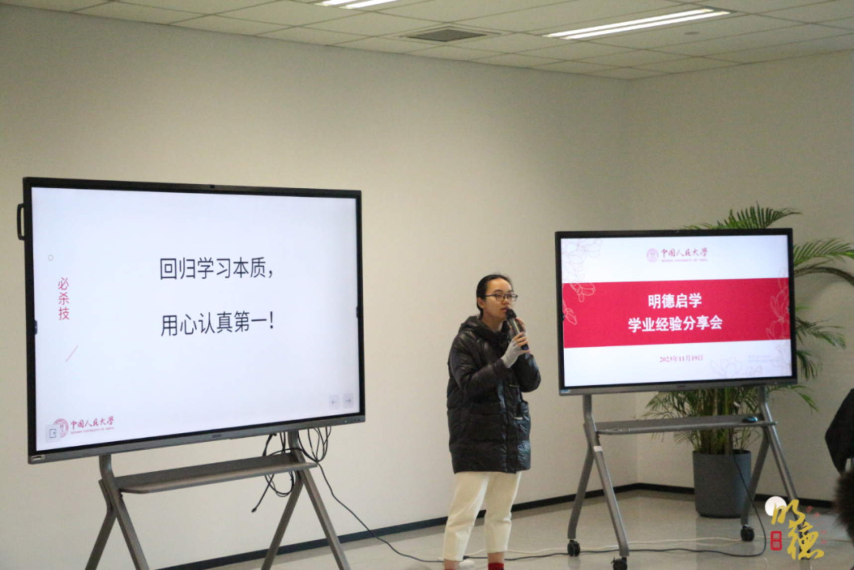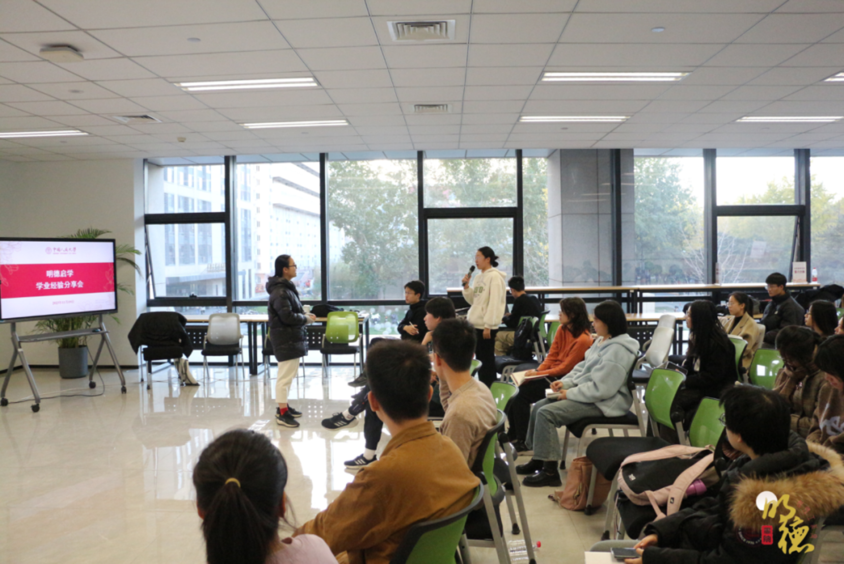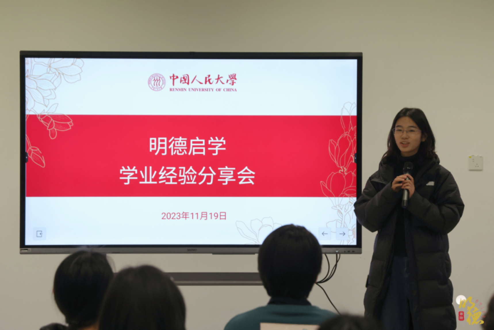 11月19日下午,“明德启学·学业经验分享会”在立德楼二层书院第六空间举行,活动由学术实践中心孟子杰主持,四位优秀高年级学生受邀担任主讲,为刚刚经历过期中考试的大一新生们分享经验、答疑解惑。