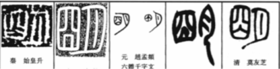 “明”字的篆书字形仍然能清楚得看出早期汉字的某些特征不论是“日”、“囧”还是“月”的写法都还具有很强的象形性。而隶楷阶段的“明”字笔画明显更加平折。