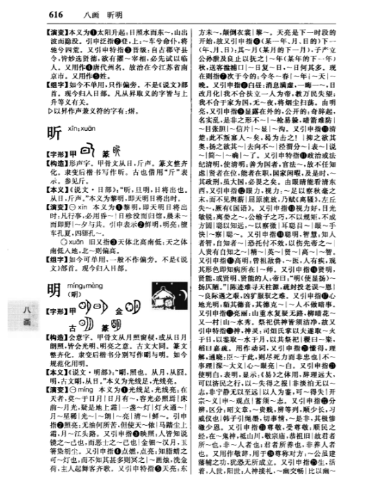 随着汉字自身的发展以及汉字的大量使用,“明”字也引申出了许多其他抽象意,如“显明”、“明智”、“明了”等等,“明”也被用作姓氏。