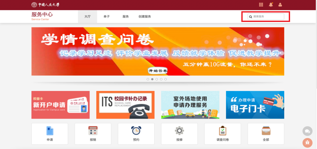 1.登陆“微人大”——选择“服务”——搜索栏中输入“学籍变动”。